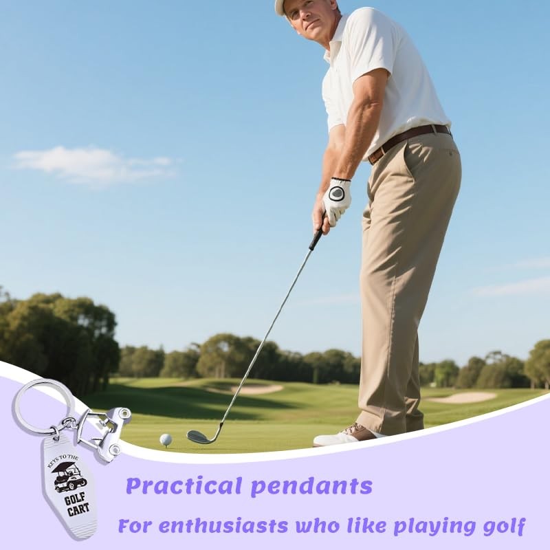 - Keys to the Golf Cart Keyring: These golf keychain can showcast your love for golfing, this golf cart keychain is the emotional bond between you and the golf course, suitable use as golf cart key chain for coach coworker, golf player handbag decor accessories, golf car key chram for husband boyfriend, golf bag decor keyring keychain