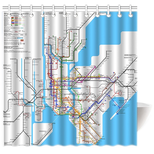 FUNNY KIDS' HOME New York Metro Subway Map Shower Curtain Custom Bathroom Curtains Waterproof Polyester Fabric 72(w) x72(h)