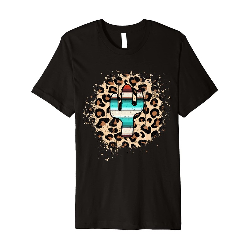 Funny Leopard Cactus Serape Cactus print Vintage Bleached Premium T-Shirt