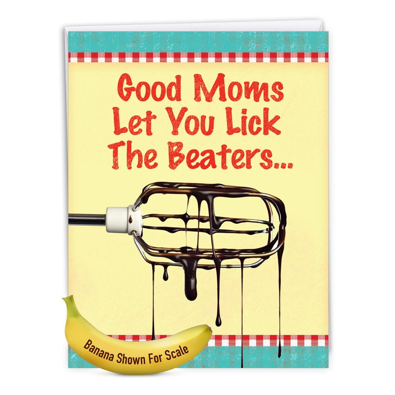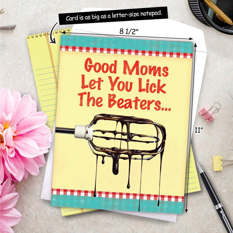 Funny 'Lick Beaters Birthday Mother' Happy Birthday Card with Envelope (Big 8.5 x 11 Inch) - Birthday Greeting Card for Mothers w/ a Beater and Chocolate Drippings - Stationery Bday Notecard J9866BMG