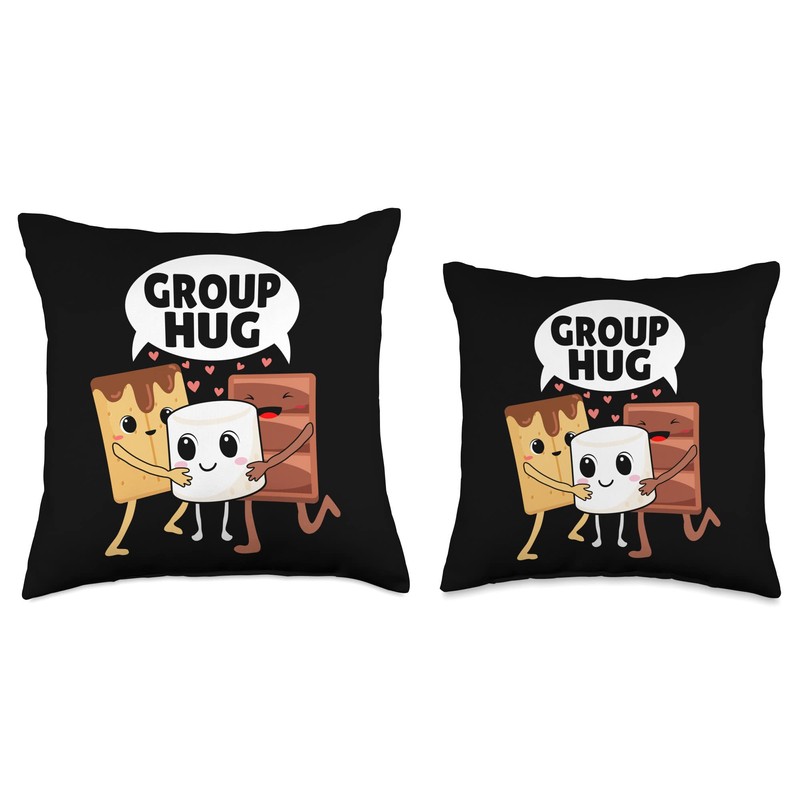 Funny Marshmallow Costume Cute Smores Group Hug Marshmallow Chocolate Lover Throw Pillow, 16x16, Multicolor