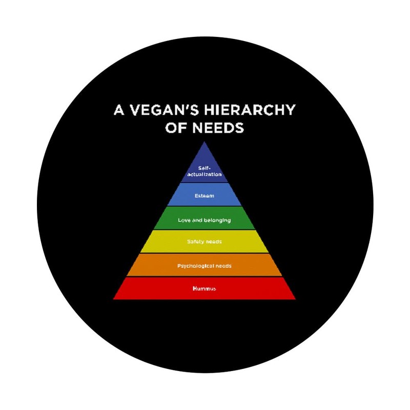 - Everybody knows that hummus is basically a food group for vegans. If you have chosen a plant-based lifestyle, this Maslow’s hierarchy of needs hummus design is the funniest way to show the world you are a vegan.