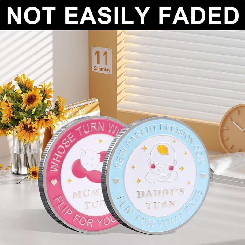 - Double-Sided Fun Design: One side of the coin reads "Daddy’s Turn", while the other says "Mummy’s Turn". Simply flip the coin to fairly decide who takes on the next baby task—whether it’s nappy changing, feeding, or bath time. A fun and practical gift for new parents!