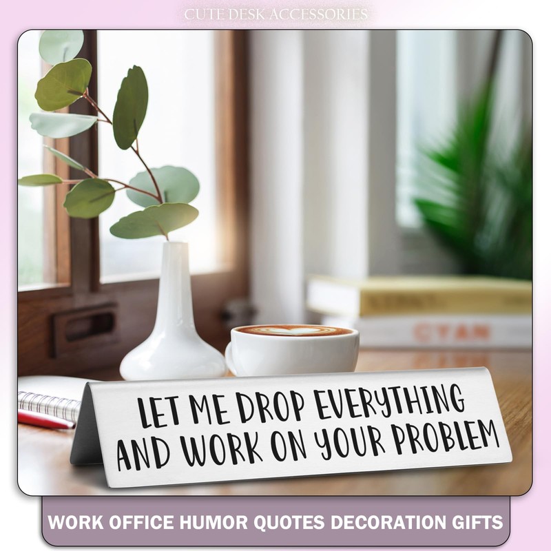 - Sarcastic Office Desk Name Plate: "LET ME DROP EVERYTHING AND WORK ON YOUR PROBLEM" adds a touch of sharp wit to your desk, perfect for inducing a chuckle or a knowing nod from passersby and colleagues alike.