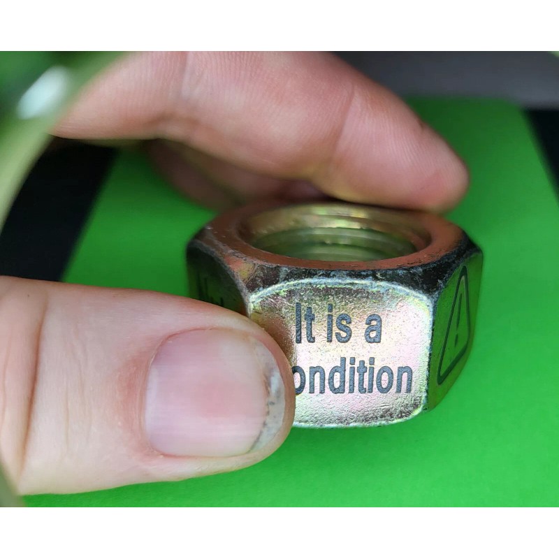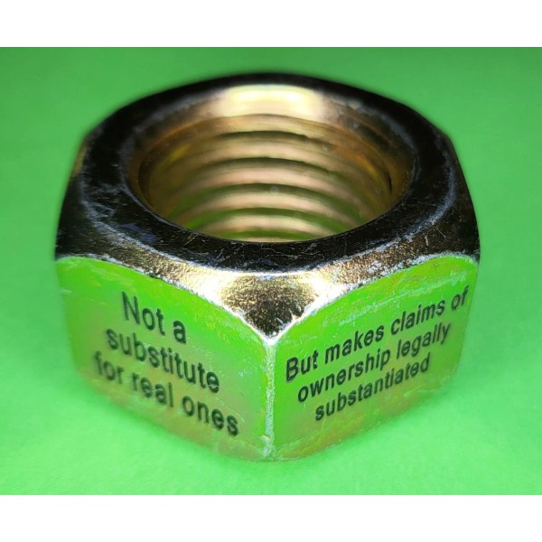 Other details: The size is 1in x 8 thread pitch. It is a yellowish color common to grade is 8. The engraving stands out in black. New, engraved and ready for you. Macro imaging makes them looks rough, but this is how they come from box when purchased. Check my other listings if you need a pair. I will combine shipping for multiple orders, but please send me a message and I will send you updated invoice.