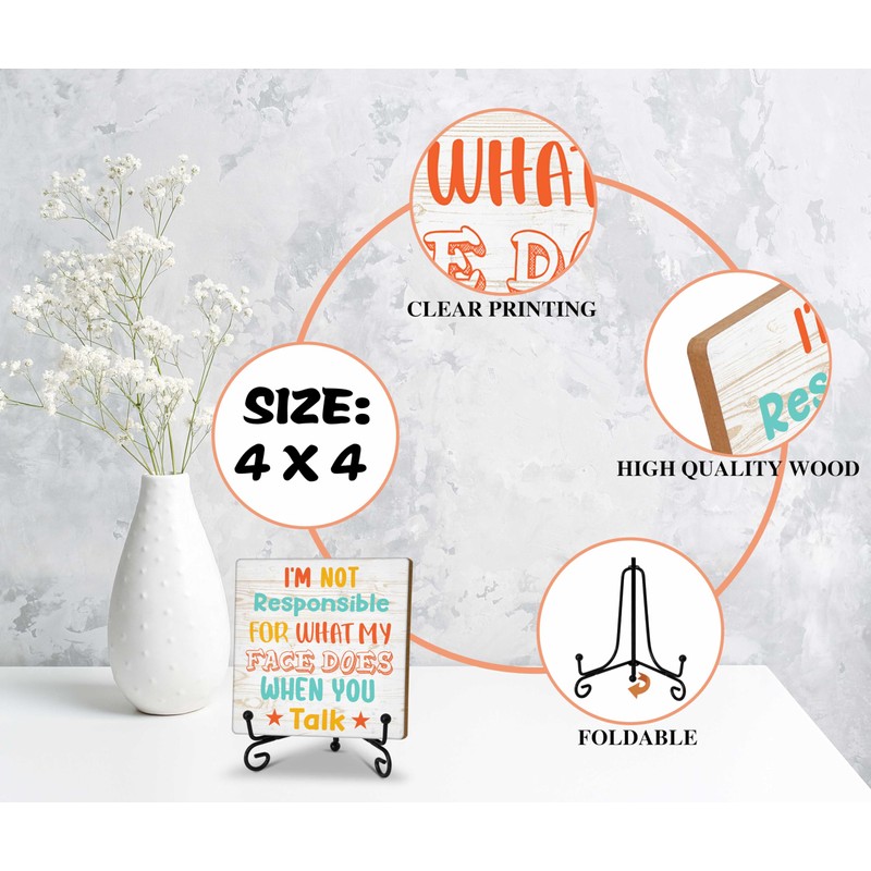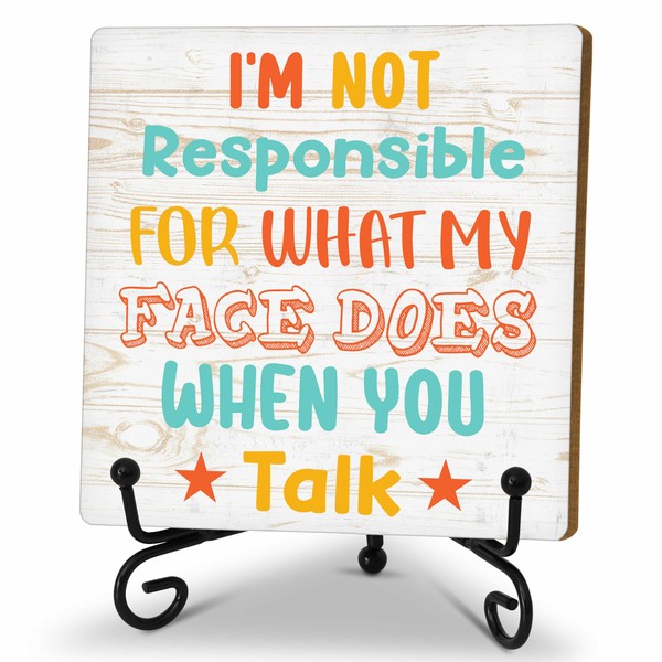 Funny Office Desk Decor Sign, Funny Wooden Sign With Stand, I am Not Responsible for What My Face Does When You Talk Sign For Home Office Shelf Table, Inspirational Gifts For Family Friend, A02