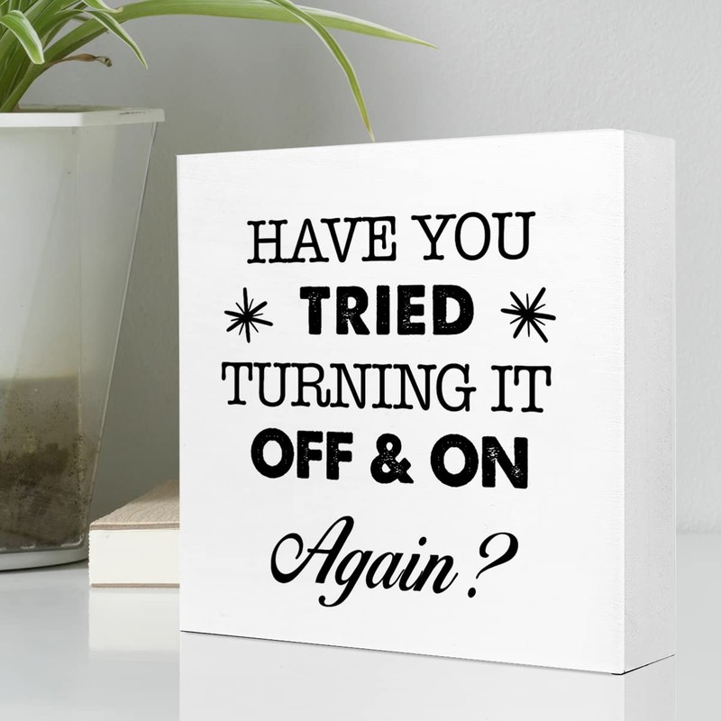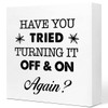 Funny Office Wooden Box Sign,Sarcastic Office Signs,Office Decorations for Work Desk,Inspirational Office Desk Decor,Have You Tried Turning It off and on Again Sign