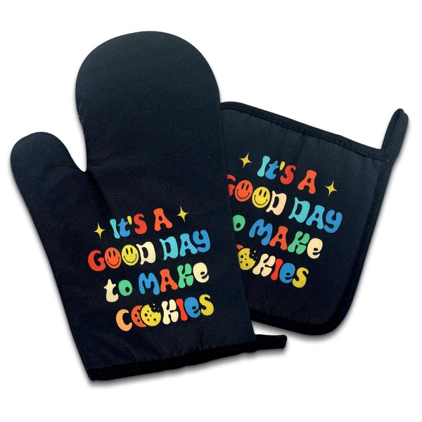 Funny Oven Mitts and Pot Holders Set,It's A Great Day for Making Cookies,Silicone Non-Slip Insulator,Kitchen Gift for Baking Mom, Baking Dad,Bakery Chef,Housewarming Gift