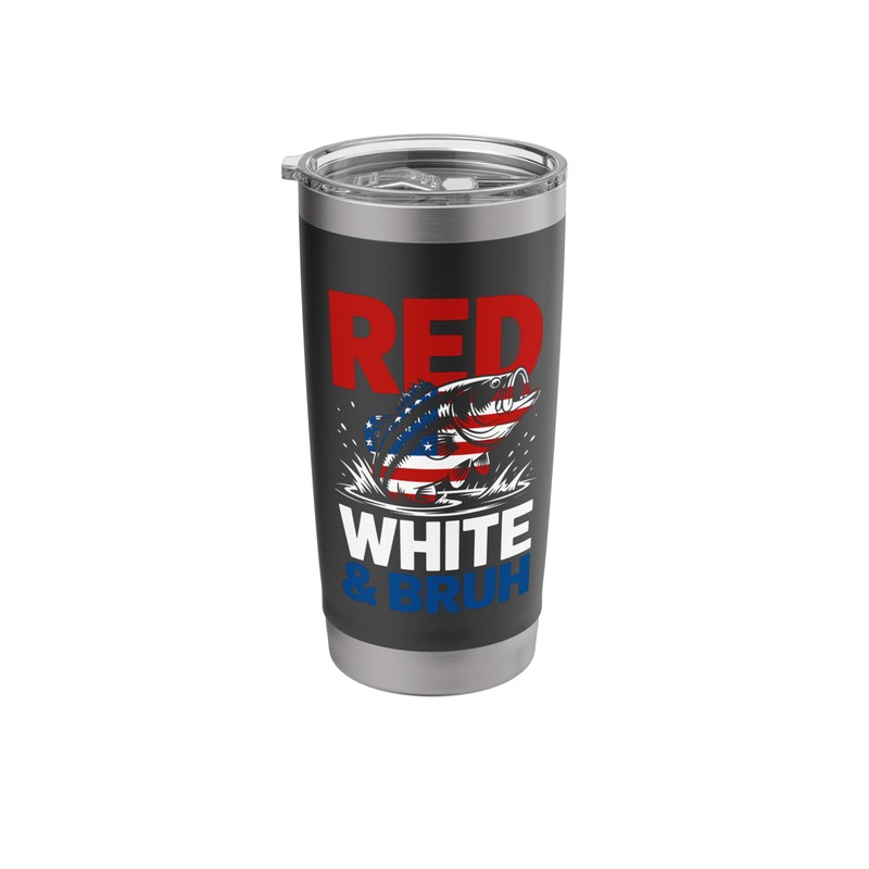 Funny Patriotic Fishing Red White & Bruh For 4th Of July Stainless Steel Insulated Tumbler