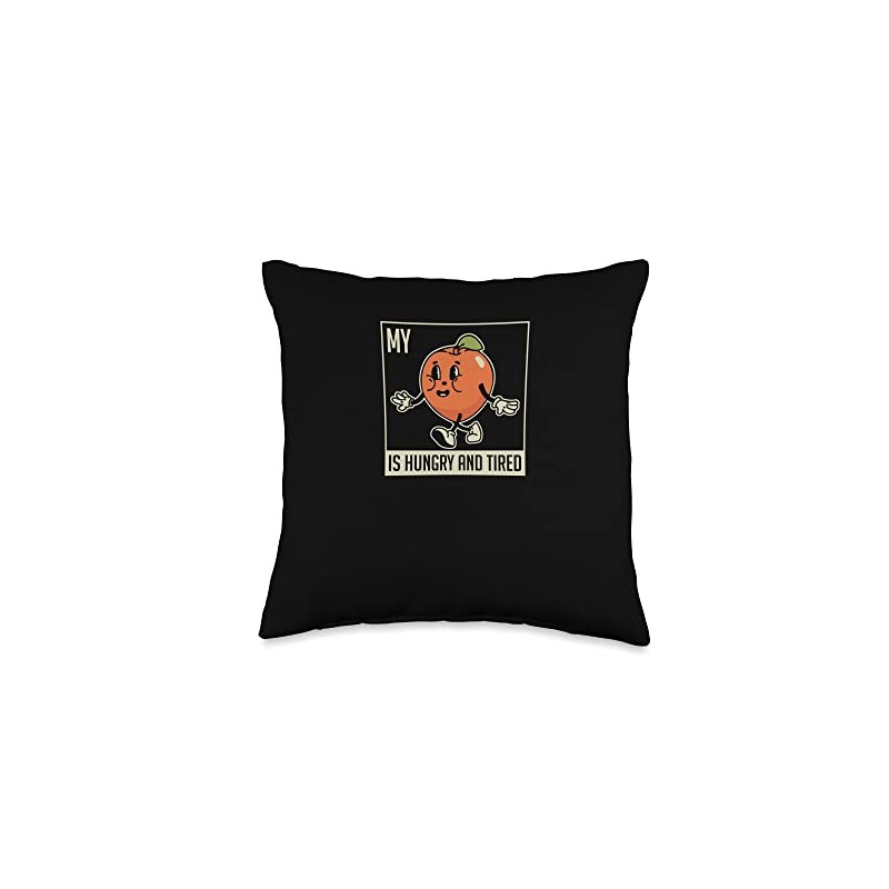Funny Peaches Nectarine Humor Peachy Fruit Print Just Apricot Peach Hungry and Tired Throw Pillow, 16x16, Multicolor