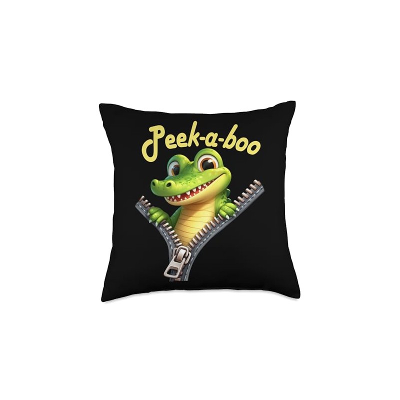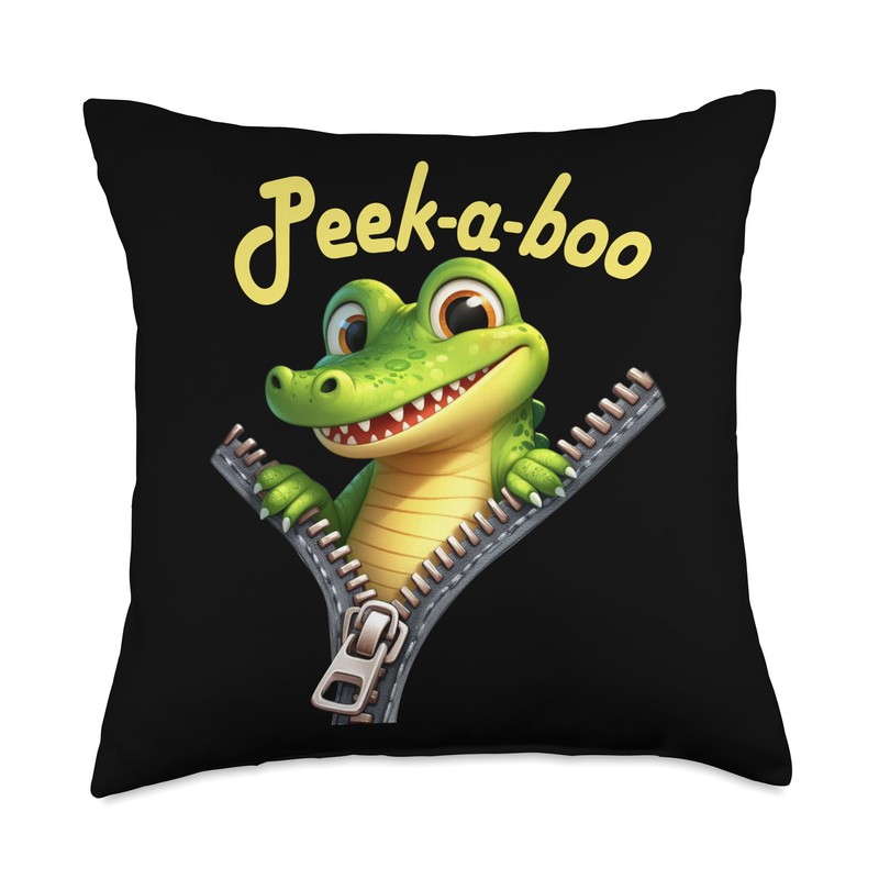 Funny - Peek-a-boo - Crocodile Throw Pillow
