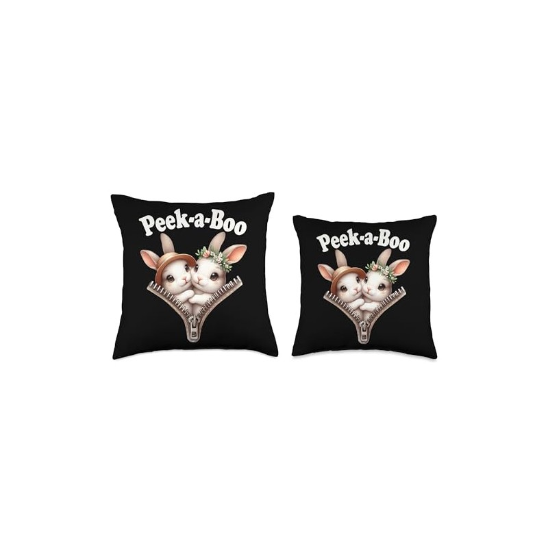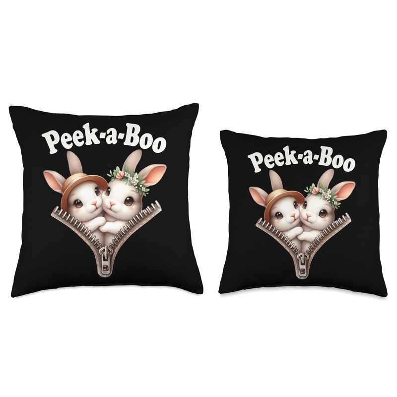 Funny - Peek-a-boo - Cute - Bunny - Couple Throw Pillow