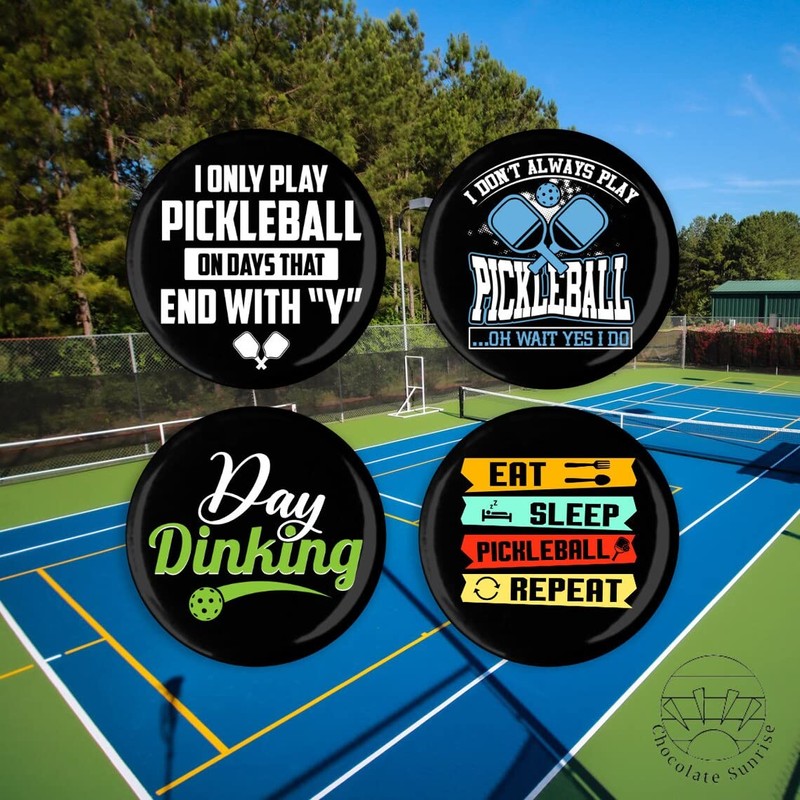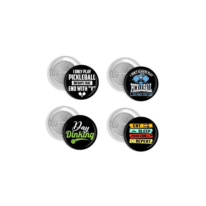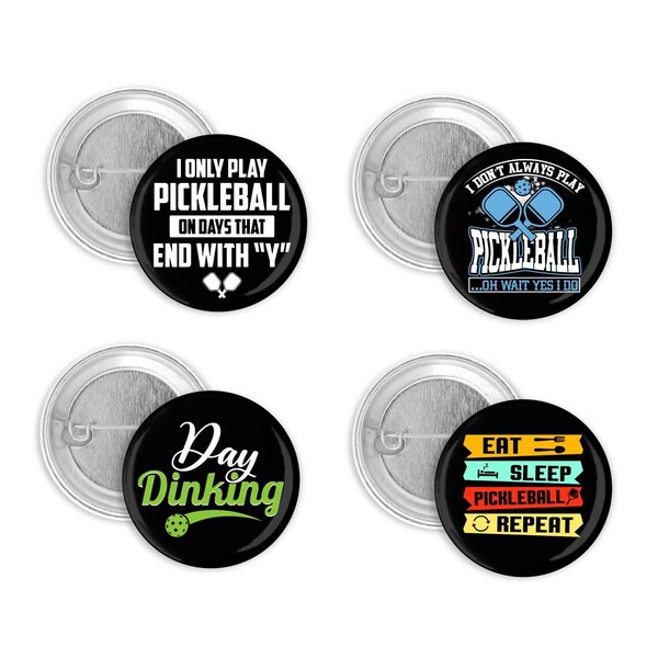 Funny Pickleball Players Set of 4 Pin Back Buttons