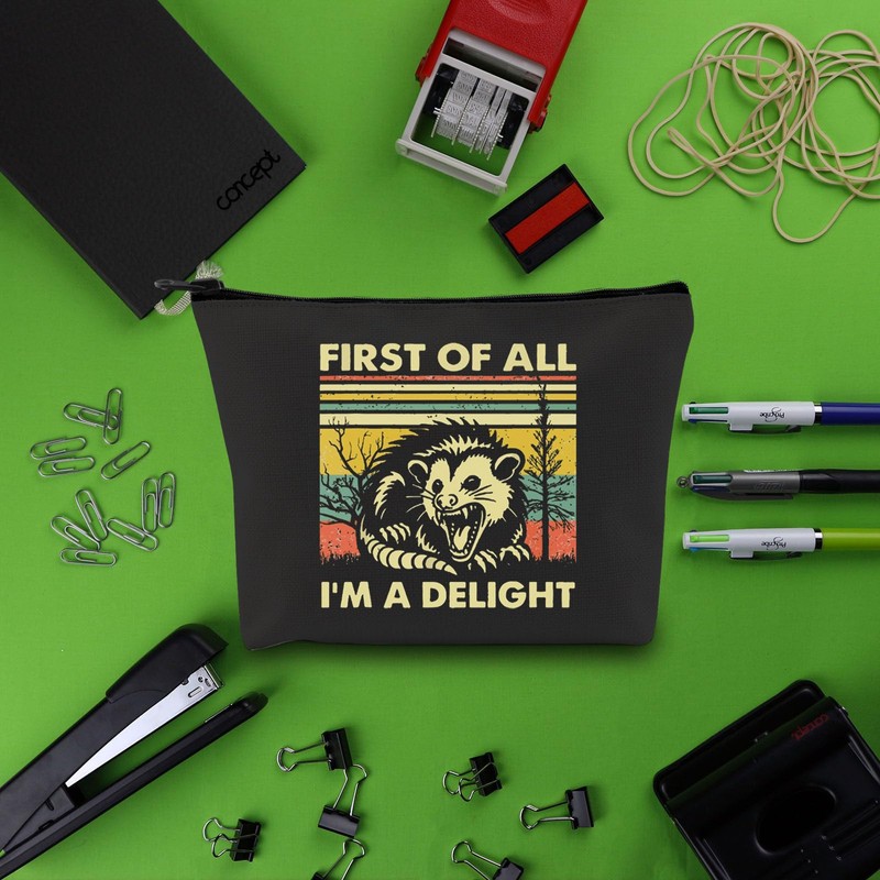 Funny Possum Meme Gifts Cute Sarcastic Possum Quote Makeup Pouch Unique Gift for Opossum Lovers Angry Possum (MB, Possum Delight-PY1)