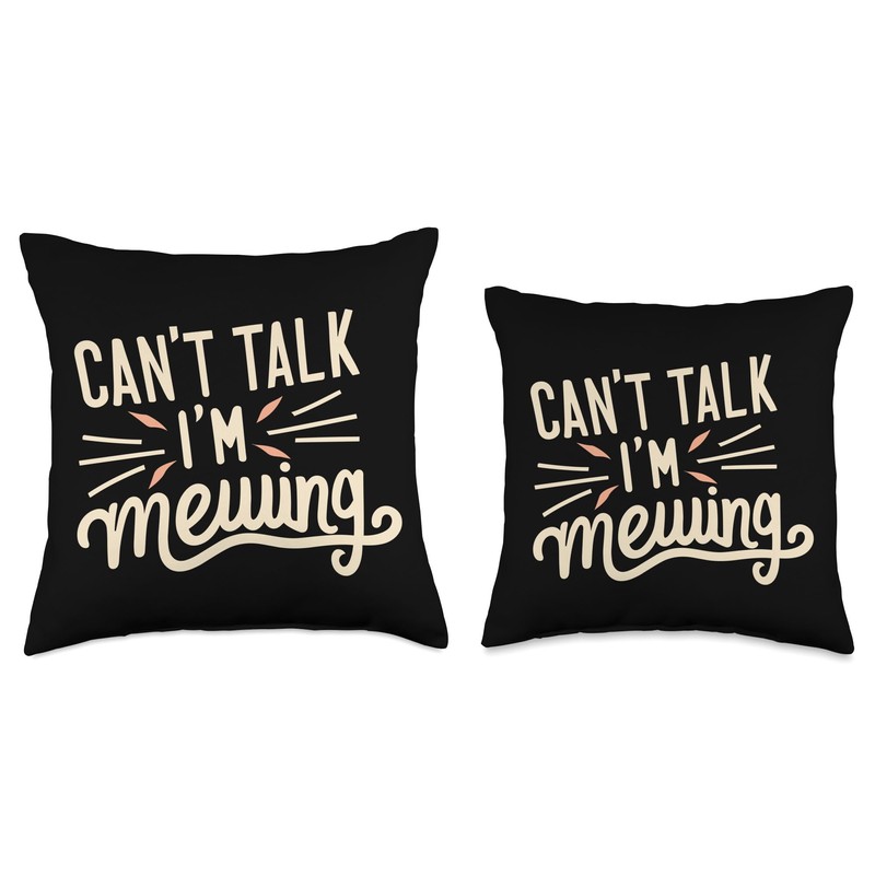 Funny Quote Can't Talk I'm Mewing Gifts Funny Quote Can't Talk I'm Mewing Throw Pillow, 16x16, Multicolor