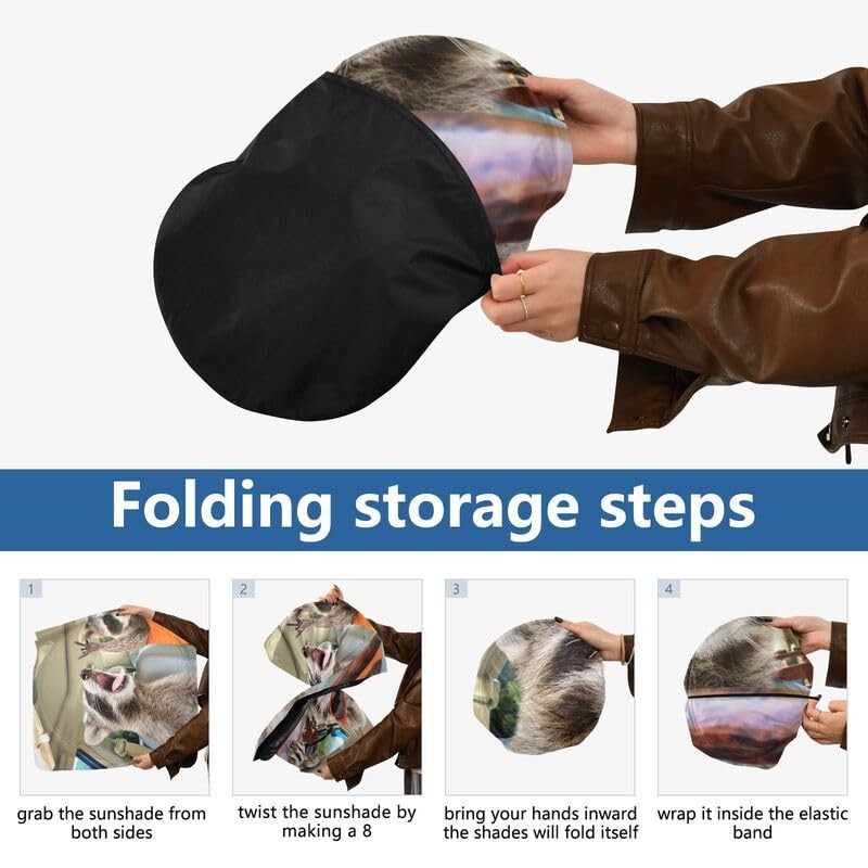 Funny Raccoon Windshield Sun Shade Foldable for SUV Trucks Cute Animal Sunshade for Car Windshield Universal Sun Blocker Cover for Auto Front Window Visor Protector 59x30 in