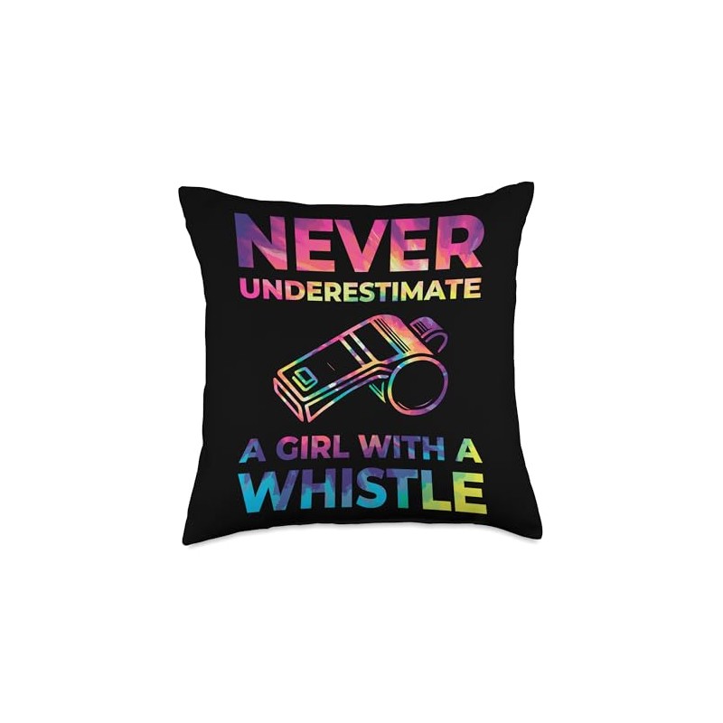 Funny Referee Never Underestimate A Girl With A Whistle Throw Pillow