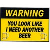 Funny Refrigerator Magnet. "Warning You Look Like I Need Another Beer". 2 siz...