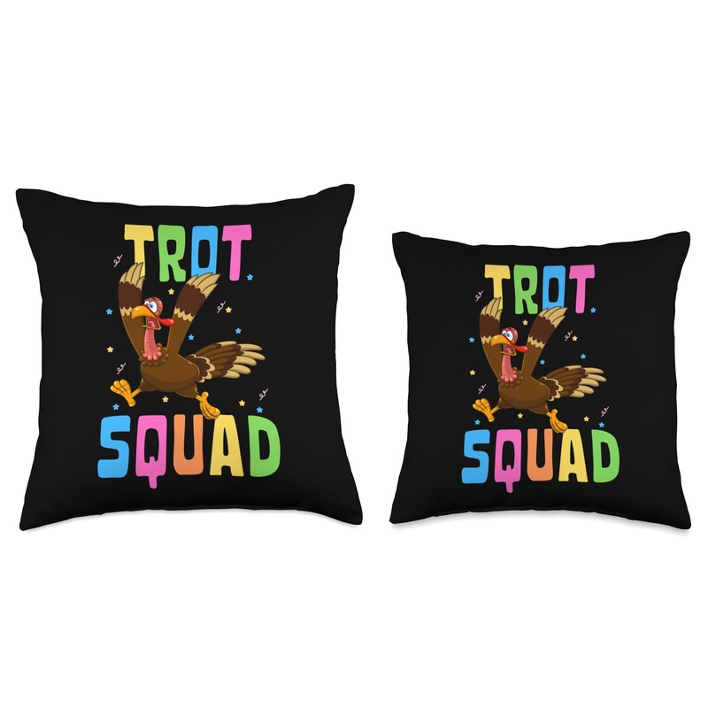 Funny Running Turkey Sunglasses Trot Squad Thanksgiving Throw Pillow