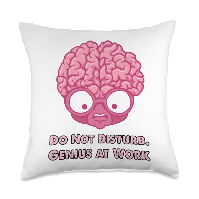 funny sarcastic do not Disturb. Genius at Work. Funny Brain concentrating Throw Pillow, 18x18, Multicolor