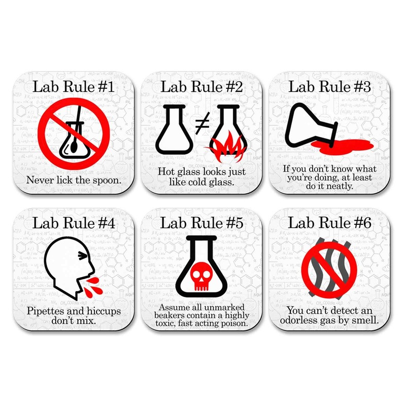 Funny Science Coaster Set - Lab Rules - 6 Piece Set - Neoprene - Neurons Not Included