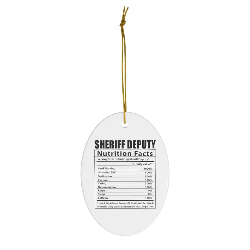 Funny Sheriff Deputy Nutritional Facts Gifts 2024 Christmas Tree Ornaments Oval Ceramic