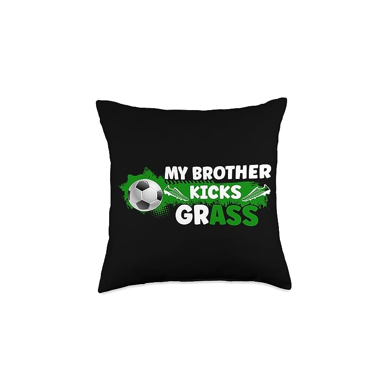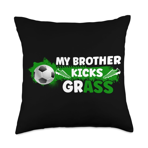 Funny Soccer Bro Soccer Player's Brother Kicks Grass Brother Of A Soccer Player Throw Pillow, 18x18, Multicolor