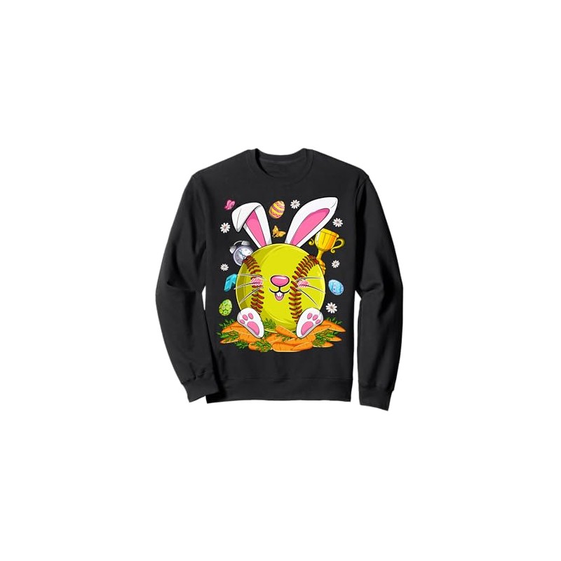 Funny Softball & Bunny Face Eggs Happy Easter Day Men Boys Sweatshirt