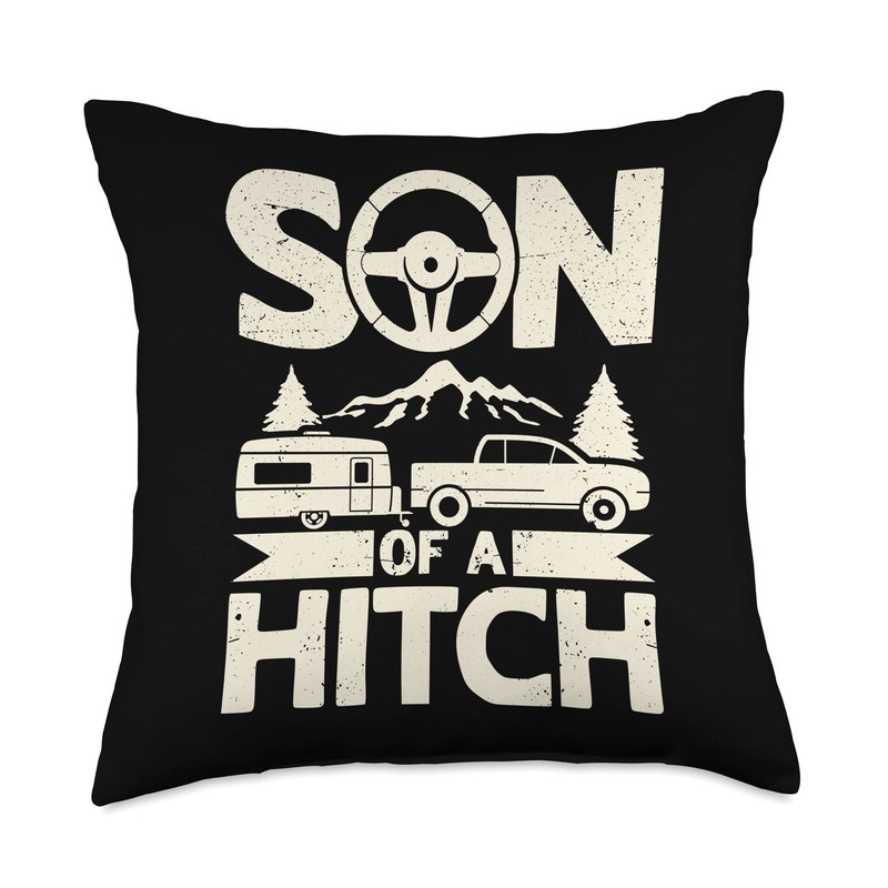 Funny Son of a Hitch Trailer Camper Camping for Men Throw Pillow