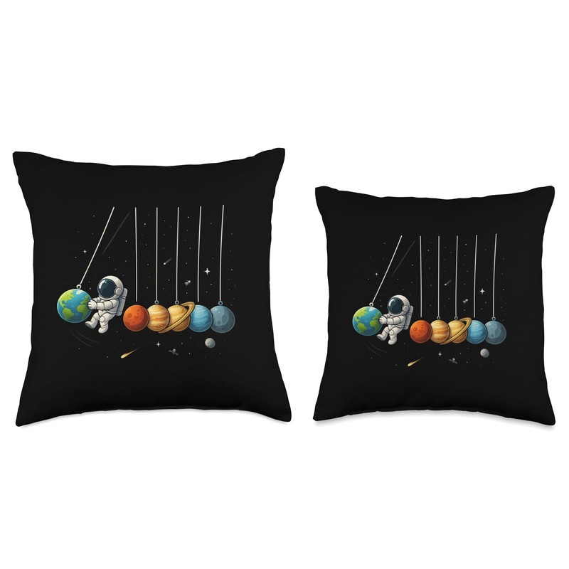 Funny Space Planets Newton Cradle Astronomy Shirt Throw Pillow