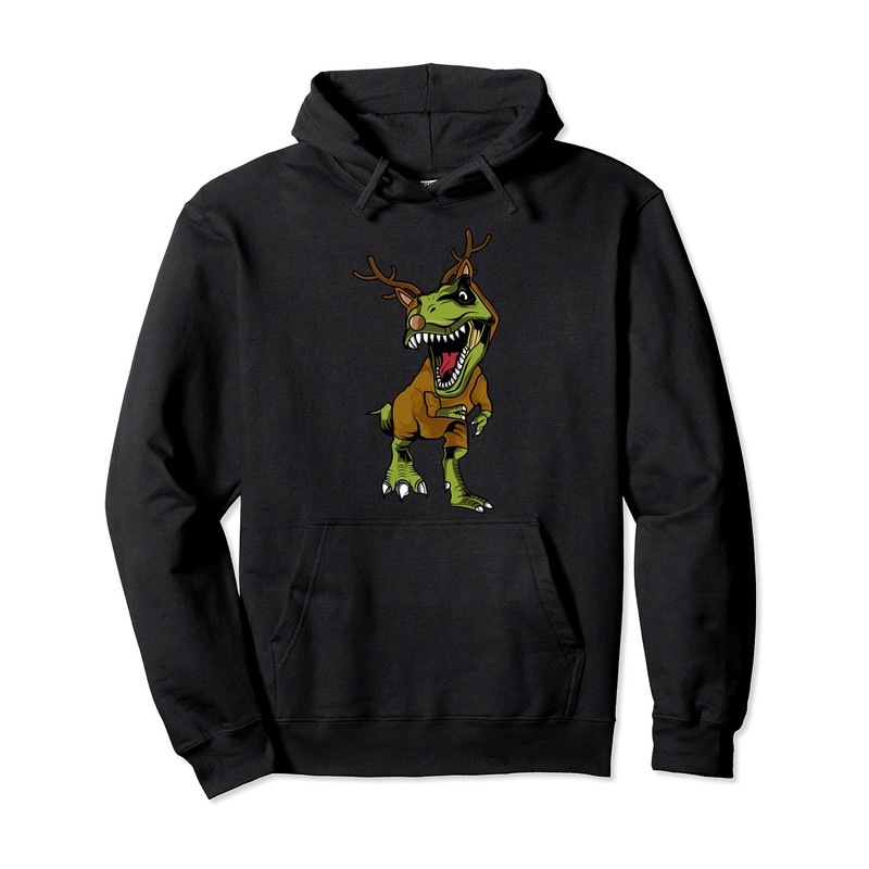 Funny T- Rex Dino In Christmas Reindeer Costume Pullover Hoodie