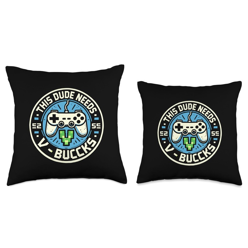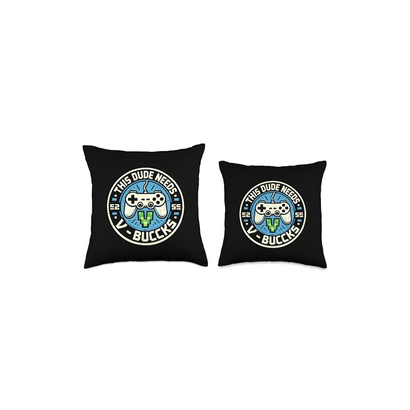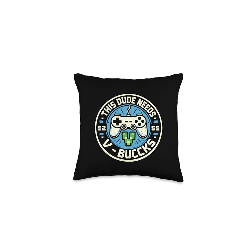 Funny This Dude Needs V-Bucks Will Work For Bucks Gamer Throw Pillow