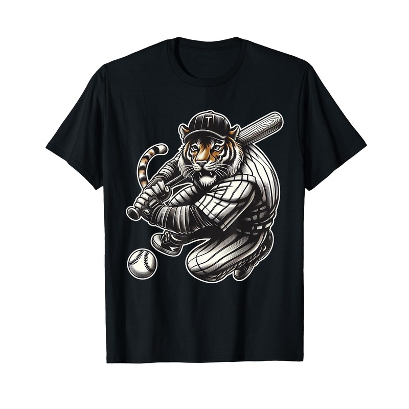 - Tiger Playing Baseball Tee . This T-shirt is a great gift addition to your outfit for kids, men and women.