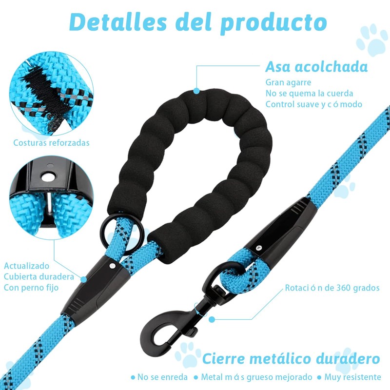 - 🐾【Mangos Comodos】: La correa para mascotas cuenta con mangos acolchados suaves para un mejor agarre y cómodo, disfruta de las caminatas con tu perro y protege tu mano de las quemaduras con cuerdas.