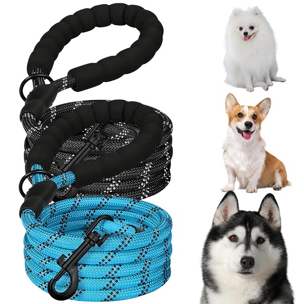 Funny toy Set de 2 Correas para Perro de 2 M con Mango Acolchado y Costuras Reflejantes para Perros, Correa Giratoria Resistente y Duradera Que no se Enreda, Apto para Perros Pequeños y Medianos