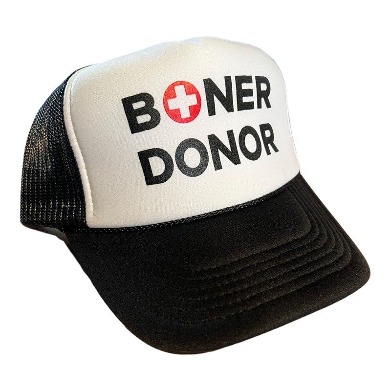 - Standout Design: Bold and funny "Boner Donor" text printed on a classic two-tone snapback trucker hat.