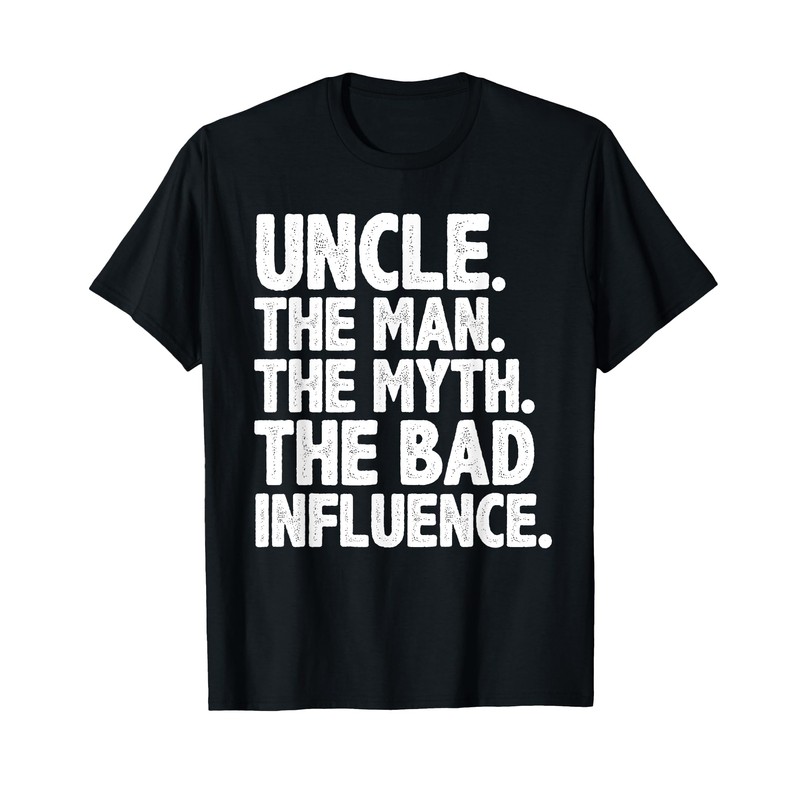 - Uncle gift idea with "Uncle. The man. The myth. The bad influence." for first time uncles. Cool uncle announcement on birthdays & Christmas for new uncles and lovers who love their niece and nephew.