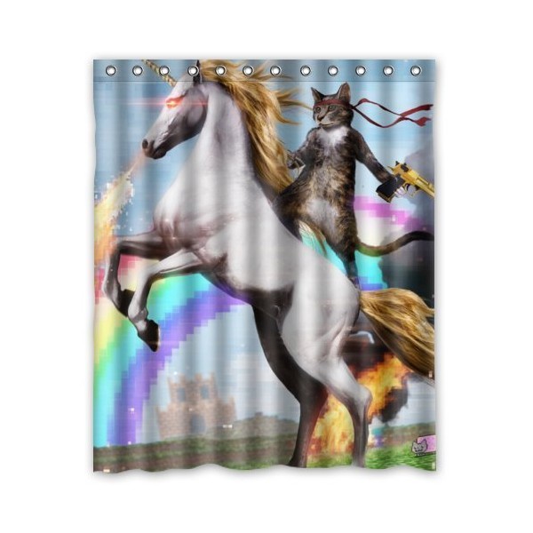 Funny Unicorn and cat Shower Curtain, Shower Rings Included 100% Polyester Wa...