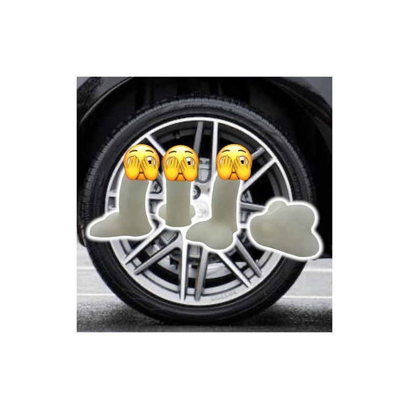 These hilarious shaped valve stem caps are a great prank. These 3D printed caps are made in the USA. They thread directly onto a standard schrader valve. The threads are hand cut to ensure accurate fitment