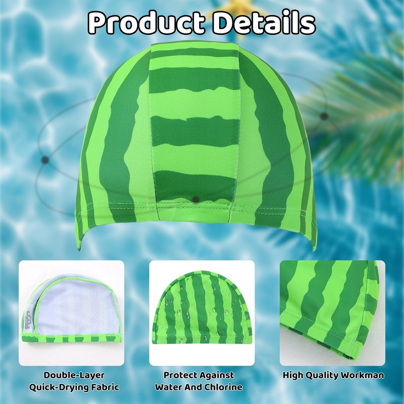 - 🍉【Fun and Attractive Watermelon Desig】The Funny Watermelon Kids Swim Cap features a unique and vibrant watermelon pattern that makes kids stand out in the pool or at the beach. The bright and playful design is perfect for boys and girls, making them eye-catching while adding an extra layer of fun to their swimming experience