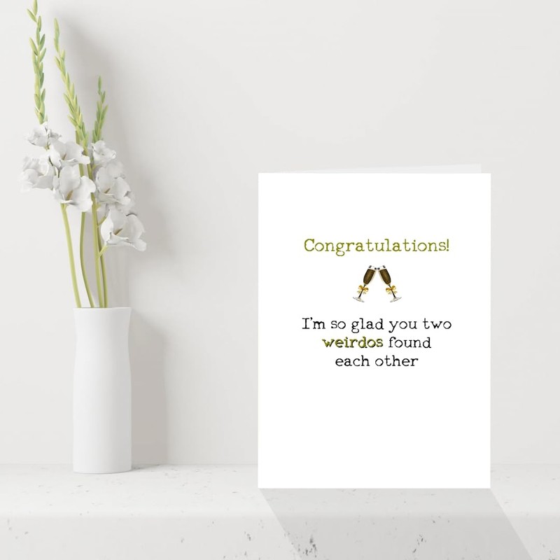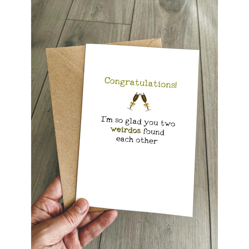 - Hilarious and Unique Design: Our "Congratulations you two weirdos" card features a one-of-a-kind, sassy design that's perfect for couples who appreciate humour.