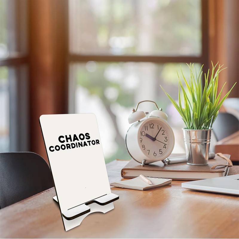 Funny Wooden Phone Stand-Chaos Coordinator-Removable Smart Phone Holder,Suitable Phone E-Book & Tablets,Phone Accessories,Desktop Organizer,Home Decorations-A08