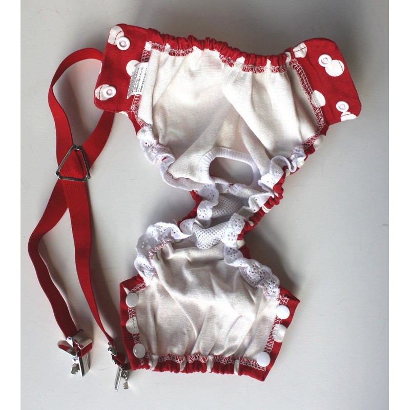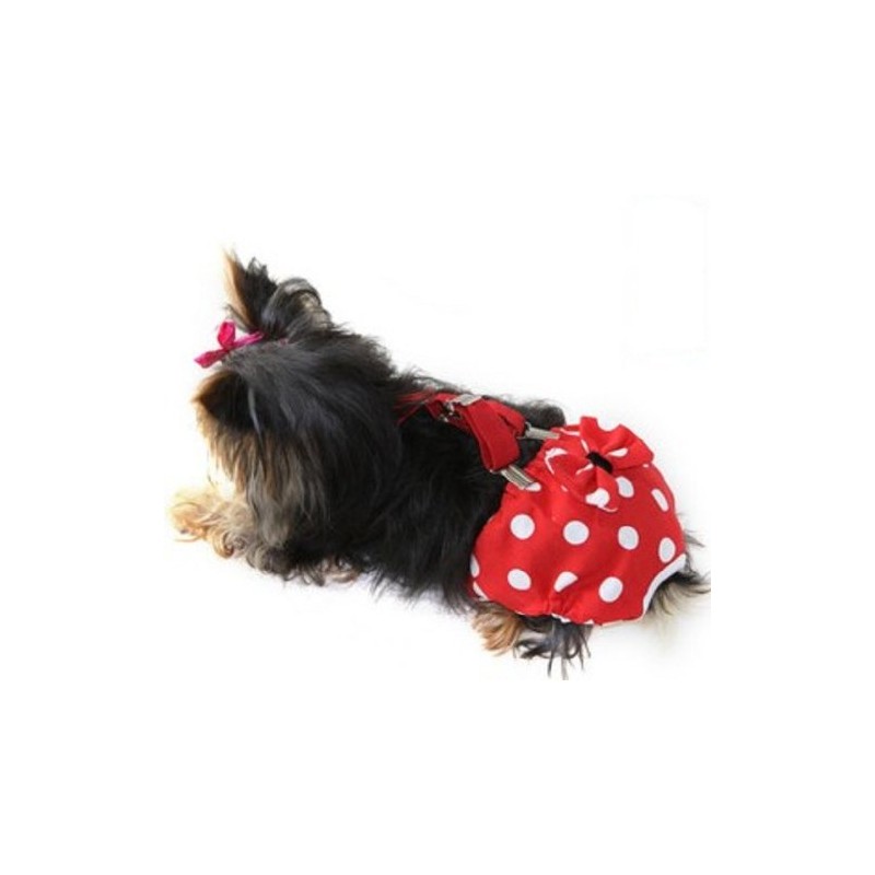 FUNNYDOGCLOTHES Dog Diaper with Suspenders RED Polka DOT Reusable Washable for Small Dog Breeds (XSmall: Waist 8" - 10")