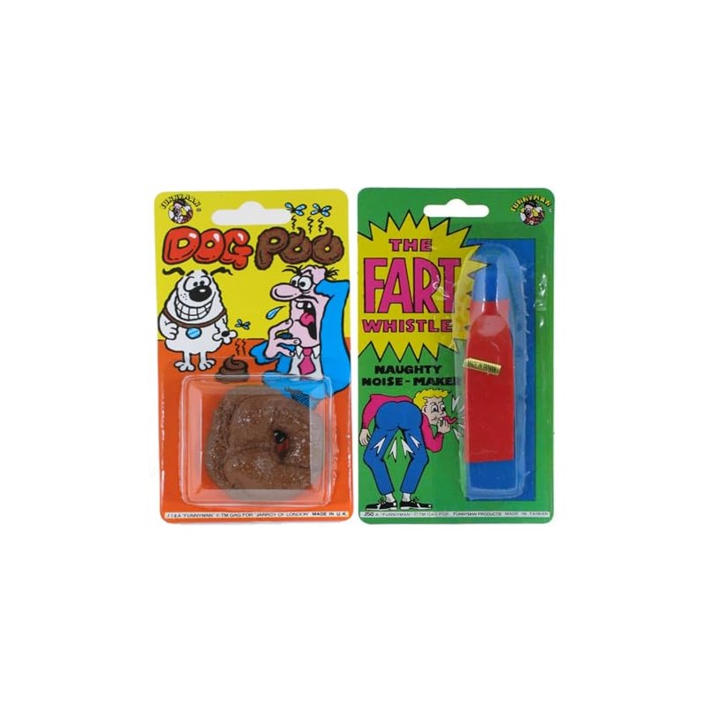 Funnyman Jokes Fart Whistle and Fake Dog Poo 2-in-1 Bundle | Party Bag Fillers for Kids, Stocking Fillers Kids Prank Kit Boys