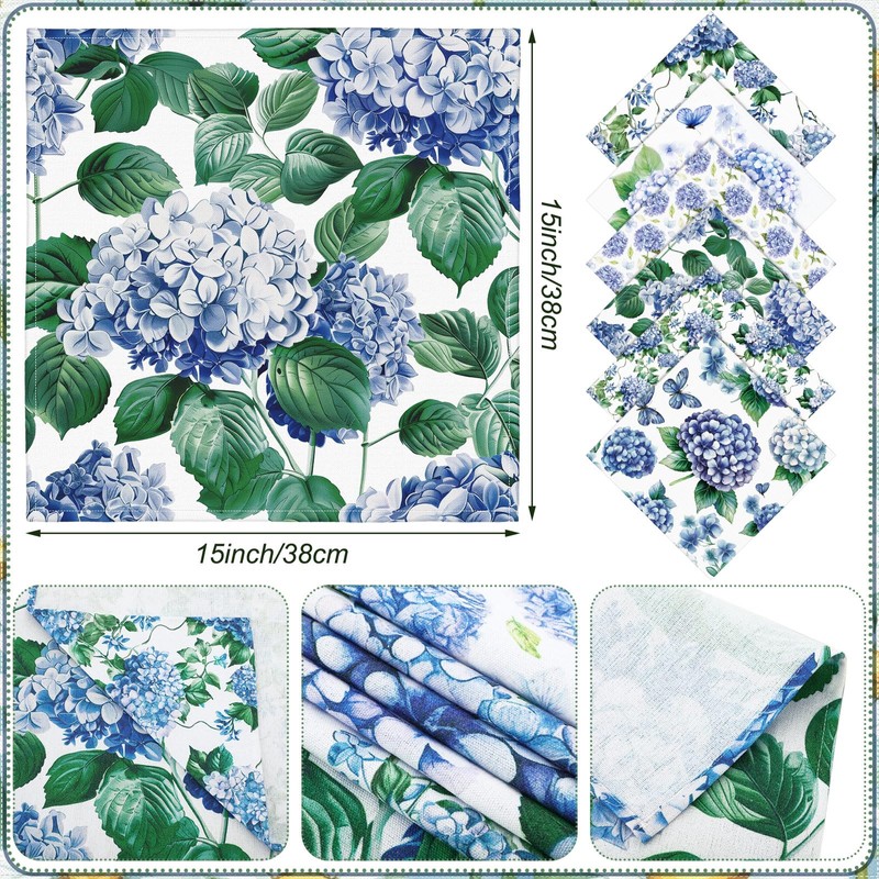 - Ample Supply of Elegance: our package includes 24 pieces of cotton napkins of 6 styles, which adopt hydrangea patterns, ensuring you will not run low on them during your hosting duties; These dinner napkins in bulk provide an ample supply