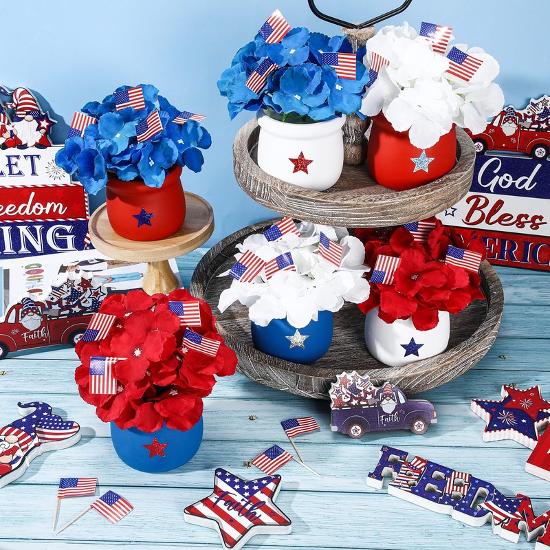 - Stunning Patriotic Decorations: our Memorial Day decorations come with 6 patriotic terracotta pots vases with 6 artificial hydrangea flower, 30 mini American flags and 500 patriotic star stickers; They're ideal for creating a captivating Independence Day atmosphere, whether decorating together or separately, ensuring every corner exudes national pride