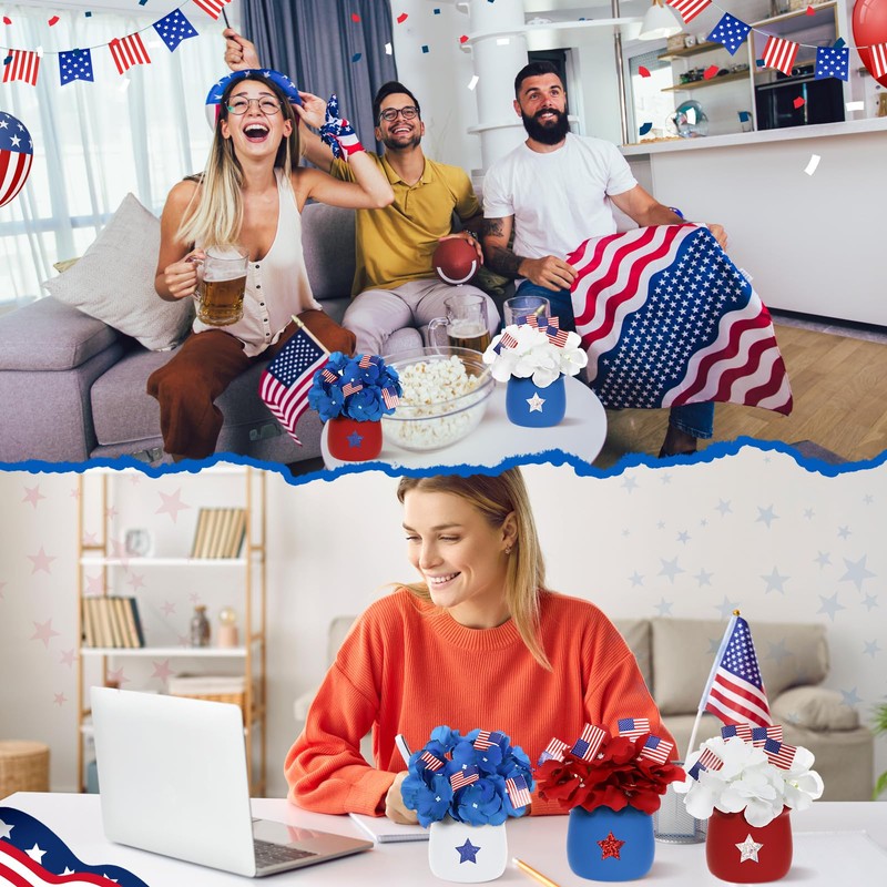 - Proper Size: each 4th of July centerpiece exudes the spirit of July 4th, offering a tableau of pride and patriotism; The vase stand 3.15 inches tall and 3.54 inches wide, serving as centerpieces on tables, shelves, or any living space, showcasing your love for the nation in style