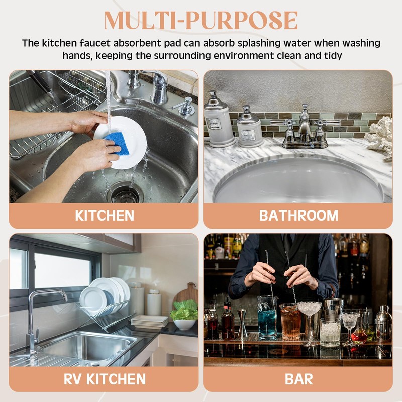 - Versatile Multipurpose Use: while this mat perfectly fits around your kitchen faucet, it does not limit its usage there; The multifunctional mat can also be applied as a faucet mat for bathroom sinks, or for organizing your campers, RVs, or laundry rooms, making it the good home accessory