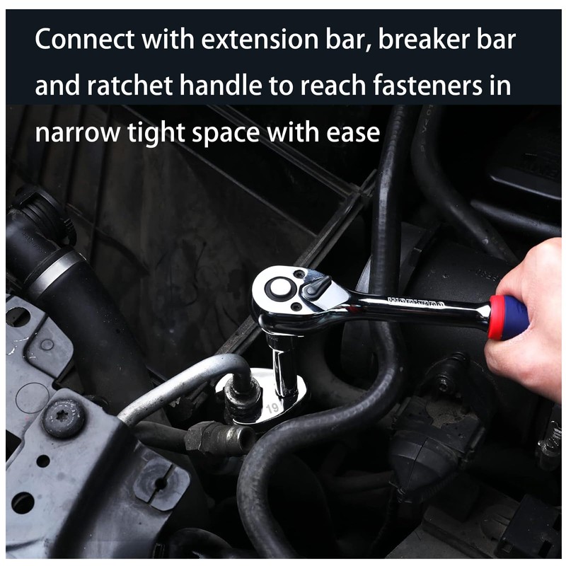 - 【Wide Application】The set is very suitable for working on oil-circuit machinery. It is also suitable for lawn equipment, car automotive & truck work in tight engine/radiator areas & control arms or underneath sink/toilet work.