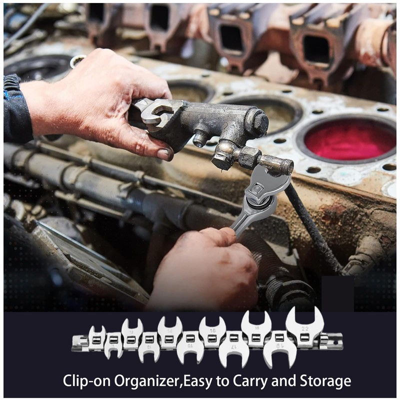 - 【Versatile Usage】Crowfoot flare nut wrench set speeds up installation and removal. It fits perfectly on a 3/8" drive ratchet, extension rod, or torque wrench. With easier access to fasteners in narrow spaces, eleven sizes meet more of your needs and make your job easier.